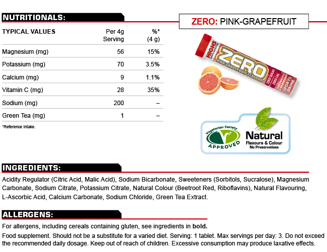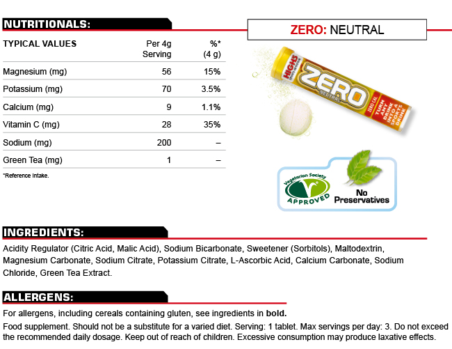 Deze wetenschappelijke formule bevat vitamine C om een gezond immuunsysteem te onderhouden, en beschermt de cellen van stress en vermoeidheid. Magnesium in de ZERO tab draagt bij tot de elektrolyten balans en ondersteunt ook spierherstel.